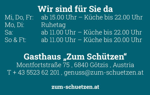 Gasthaus „Zum Schützen“ Montfortsraße 75 6840 Götzis Tel: 05523 62201 mail: